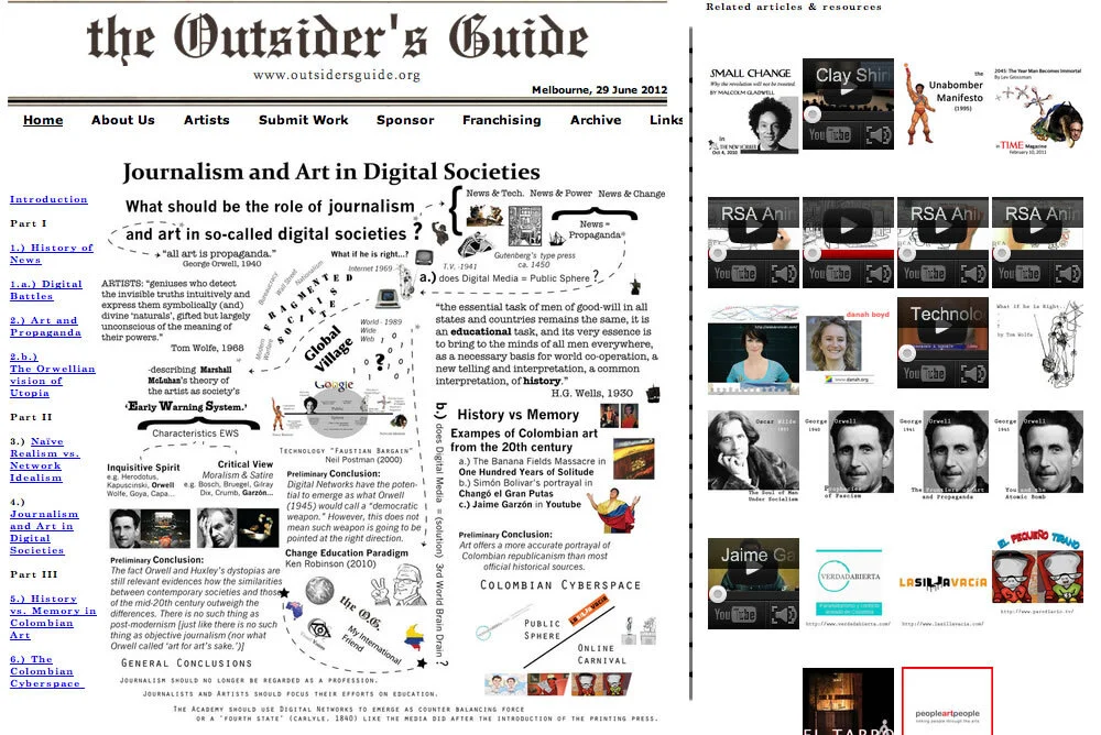 This website compiles works in creative fiction and non-fiction writing, journalism, photography, digital-collage and illustration, video and animation by Mauricio Rivera R. Including graphic novels, visual arts collection, journalistic compendiums, bilingual editions and samples of caricature and graphic/audio visual humour. These works are samples of the skills covered by the Urban Art Games’ program.